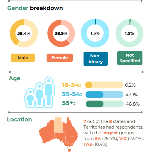 One-page summary of the demographic breakdown of the 553 people with accepted workers’ compensation claims who responded to the Workers’ Voice survey in mid-2024. Download the summary here.